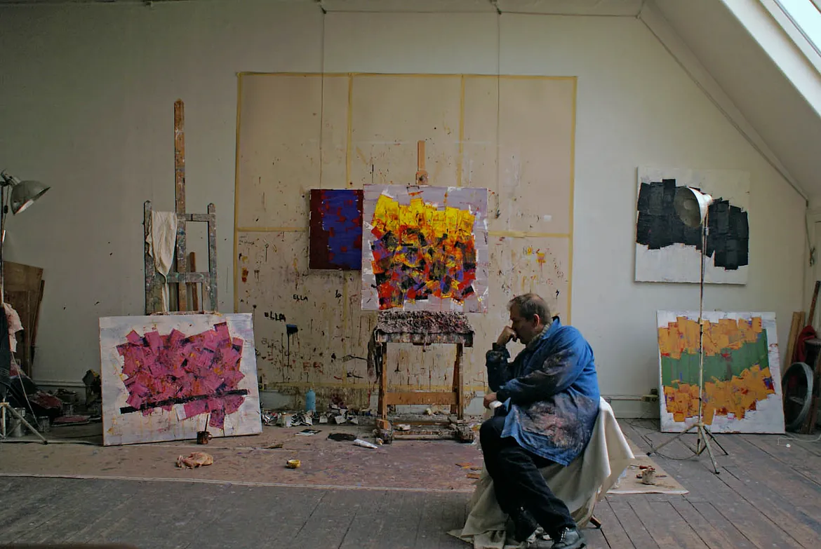 Lag på lag. Kraftige penselstrøg. Fascination af farvernes væsen. Og kompositioner, der både er stramme og voldsomt dynamiske.